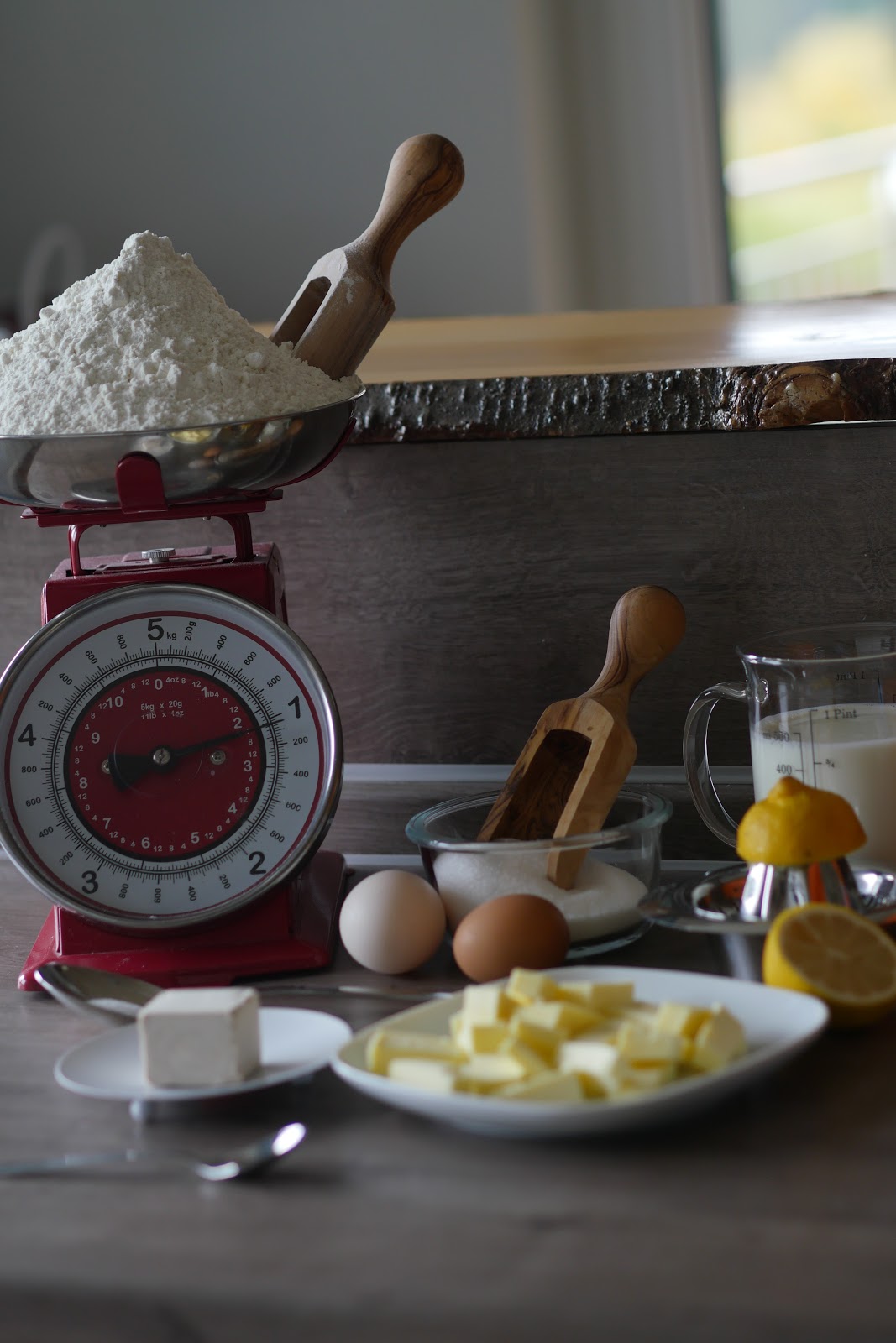 Hefe, ein Ei (das andere ist zum einstreichen), Butter, Zitronenschale, Saft einer Zitrone