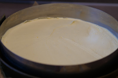 Als erstes macht ihr einen Tortenring um euren gebackenen und abgekühlten Boden. Wenn ihr keinen Tortenring habt nutzt eure Springform in dem ihr den Kuchen gebacken habt (in der Hoffnung dass der Rand hoch genug ist =)).