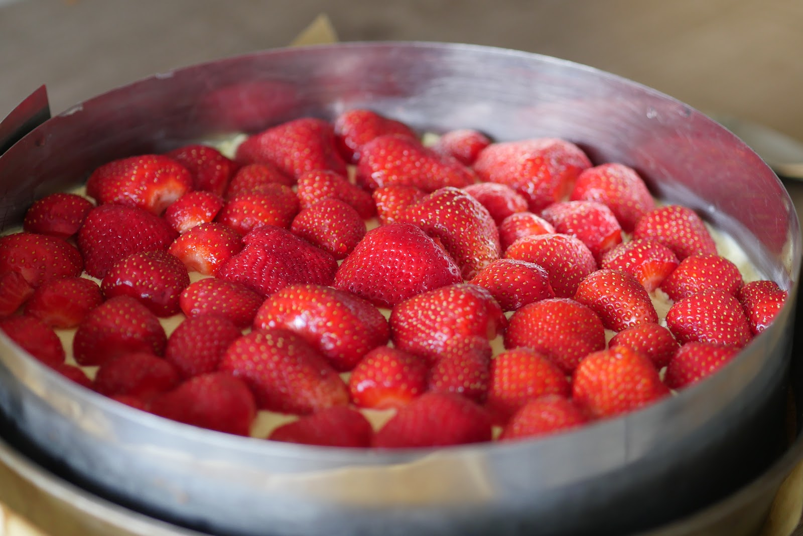Eeeeeendlich kommen die Erdbeeren obe drauf. Vergesst nicht beim waschen und schneiden die eine oder andere zu probieren ;-).