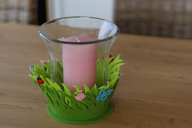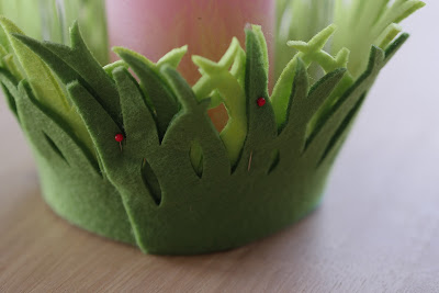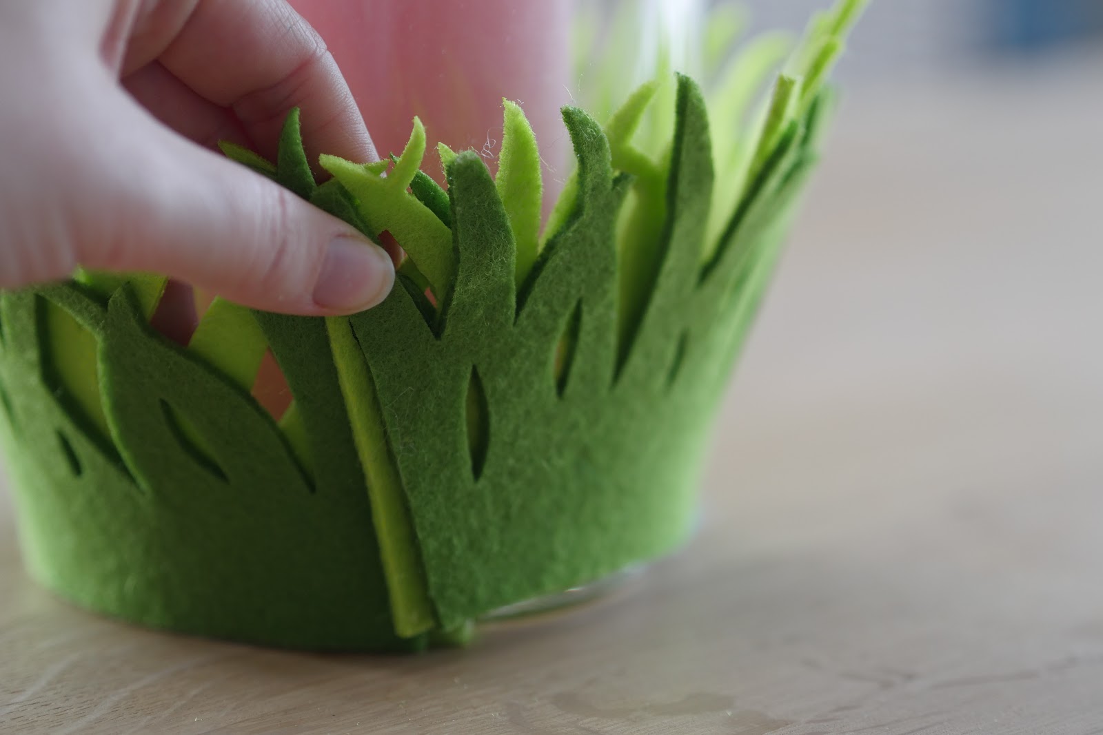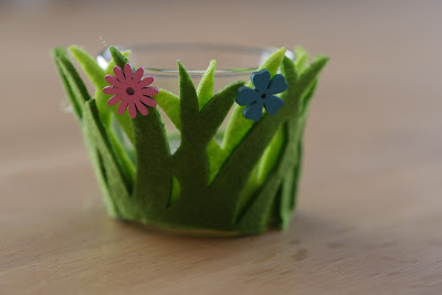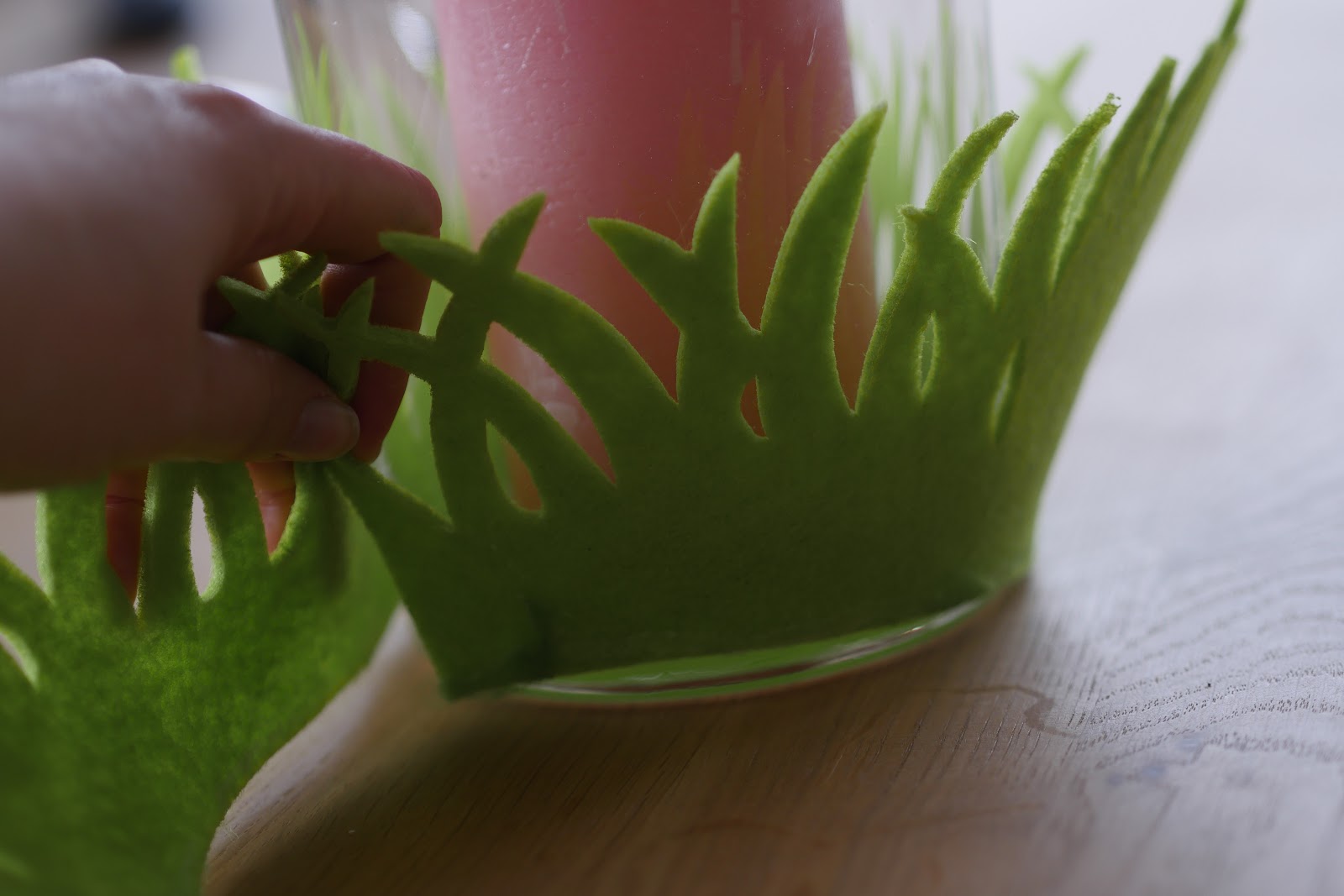 Ihr könnt den Filz an das Glas kleben (allerdings ist das Glas dann nur noch ein Frühlingsglas)