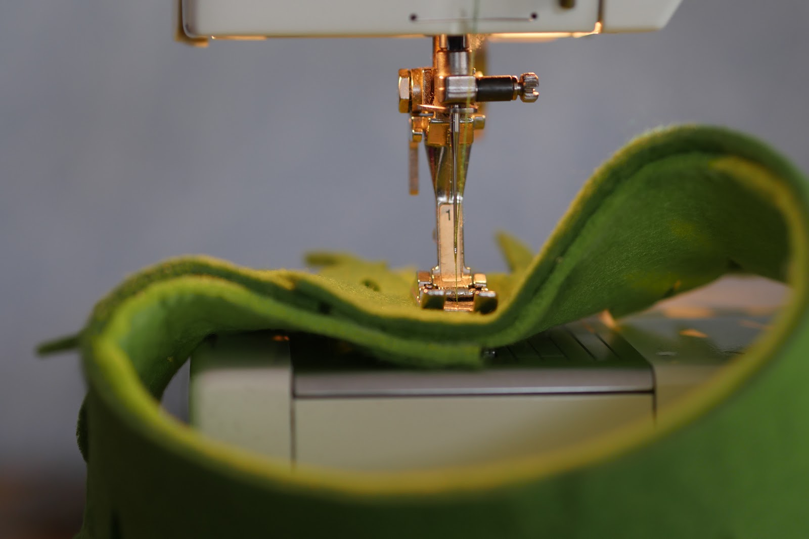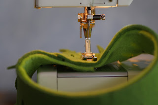 WICHTIG: Näht wirklich nur 4-3 Stiche vorwärts und dann wieder 3-4 Stiche zurück. Das hält den Filz locker zusammen und fällt viel weniger auf wie einmal komplett von oben nach unten genäht.