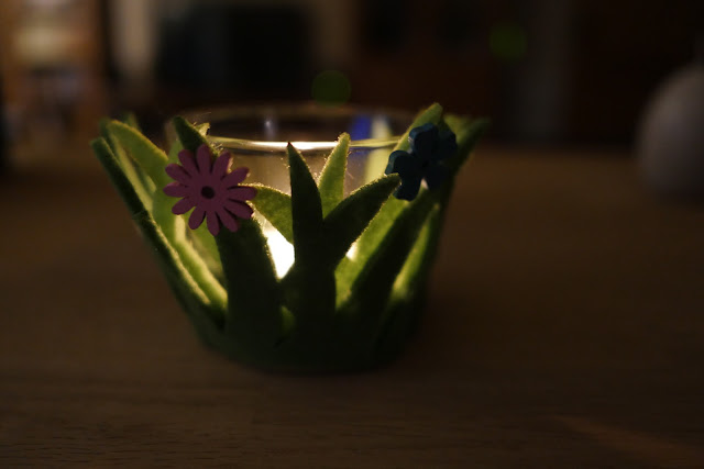 Wenn ihr wollt könnt ihr aus dem übrigen Filz (wenn ihr denn noch welches habt) einen Kreis ausschneiden auf den die Kerze dann drauf gestellt wird.