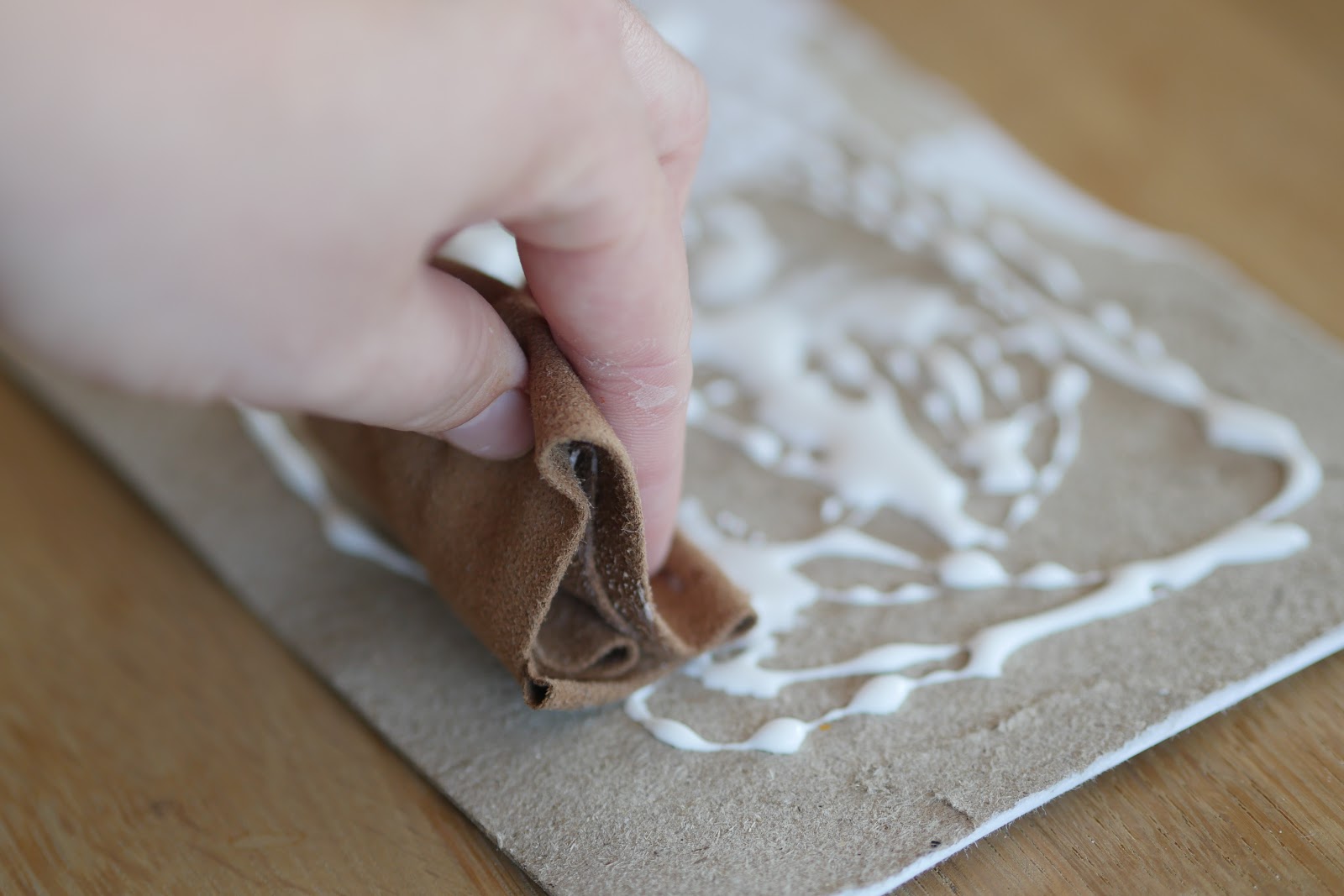 …und klebt es in die Mitte eures zugeschnittenen Leders.