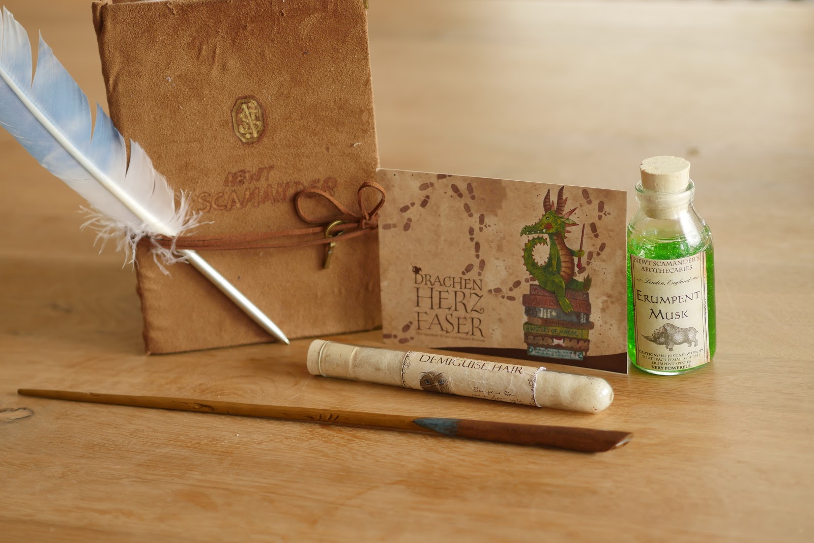 Zu gewinnen gab es ein Newt Scamander Notitzbuch, sowie eine Flasche “Erumpent Musk” und “Demiguise Hair”.