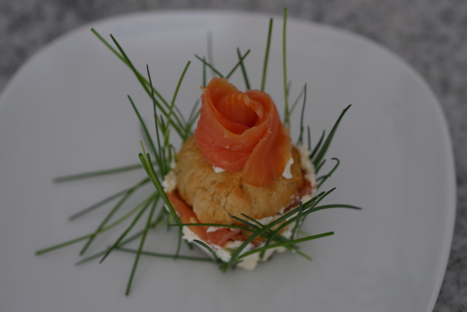 „Klebt“ diese Rose mit etwas Frischkäse oben an dem Brötchen fest und fertig ist die Mini Interpretation der Smörgåstårta