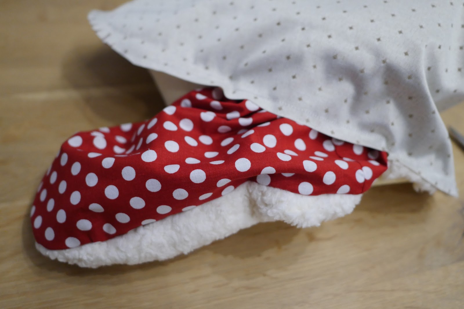 Wenn ihr euren Muff nun in der Mitte faltet erkennt man tatsächlich schon fast, was es werden soll.
