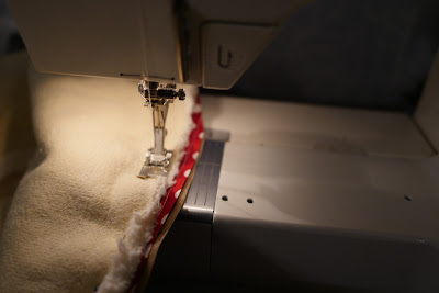 … einen warmen Stoff (Wollstoffe, Filz, Teddystoff oder ähnliches -richtig edel wird es natürlich mit echtem Fell…)