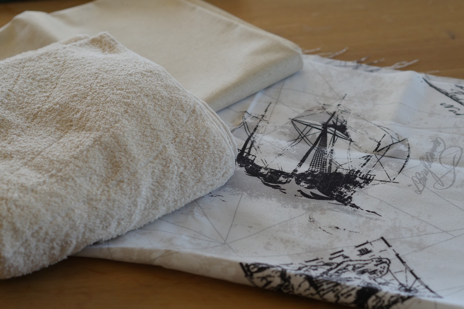 Eine beschichtete Baumwolltischdecke, damit das ganze auch wirklich dicht ist (diese ist wasserfest aber man kann sie dennoch in der Waschmaschine waschen)