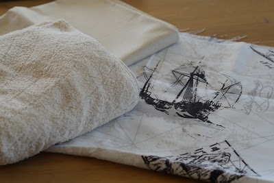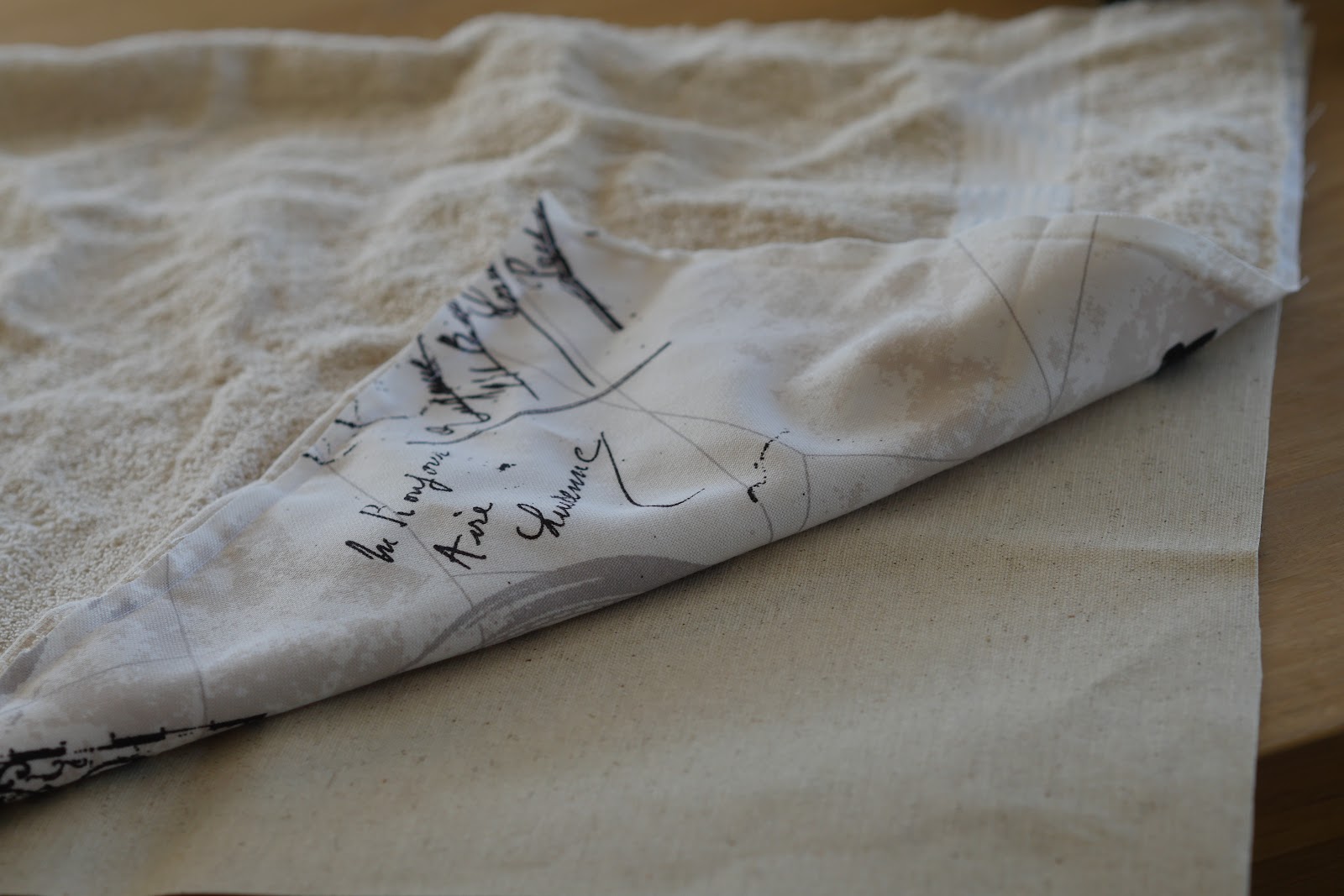 Weil sich die Handtücher beim nähen doch immer wieder verziehen steckt zuerst nur das Handtuch mit dem Stoff aufeinander