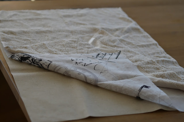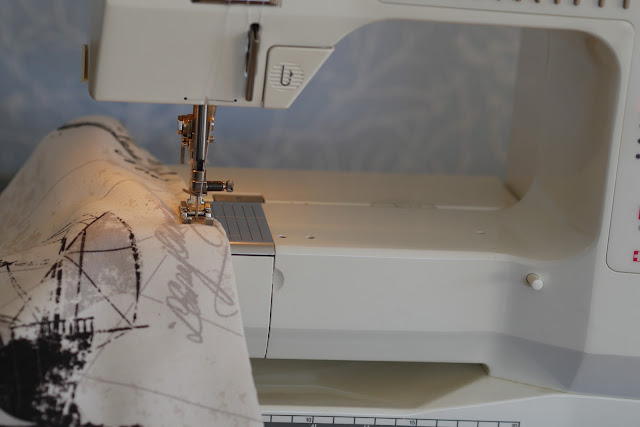 Meine Unterlage ist 70×45 also hab ich den Stoff 73×48 zugeschnitten.