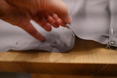 Steckt die Falte nun genau so mit den Stecknadeln fest