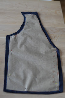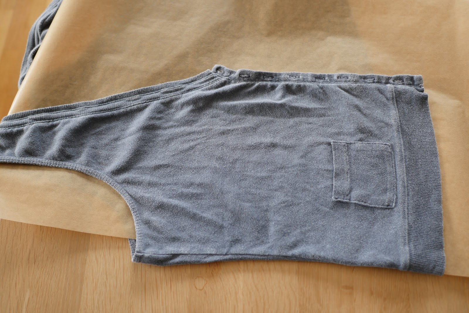 Aus dieser Weste macht ihr euch ein Schnittmuster indem ihr sie auf Backpapier legt und die Umrisse abzeichnet.