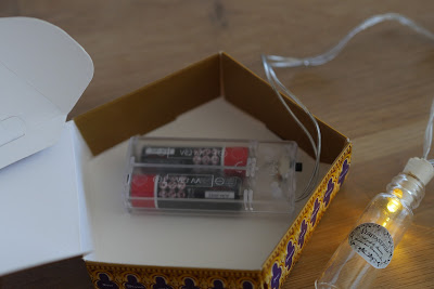 Und wenn ihr euch für eine Lichterkette mit Batterie entschieden habt kann das Batteriefach einfach in einer Schokofrosch Kiste verschwinden :)…